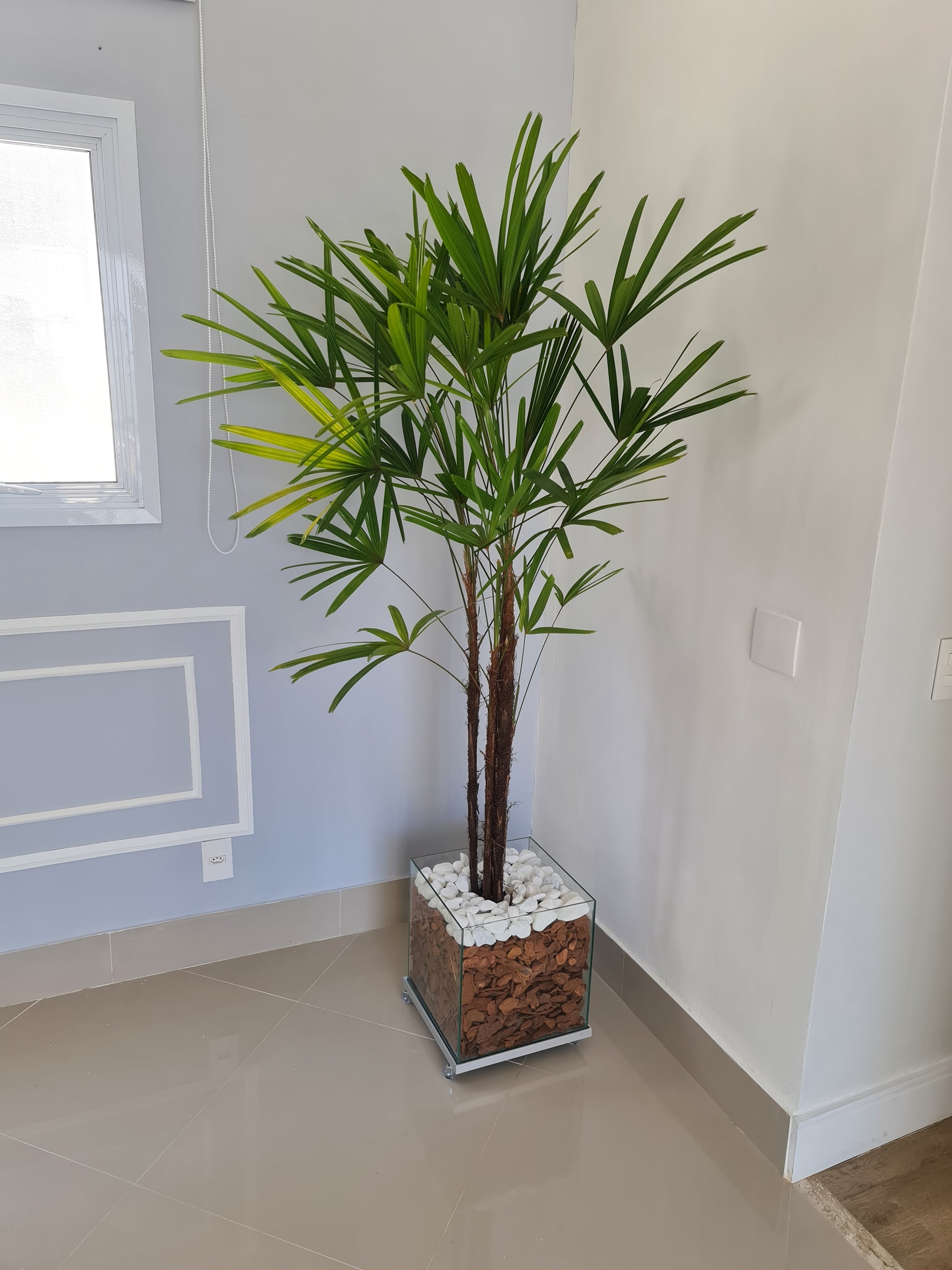 Ráfia c/ Vaso de vidro 30x30